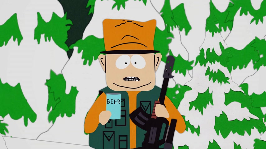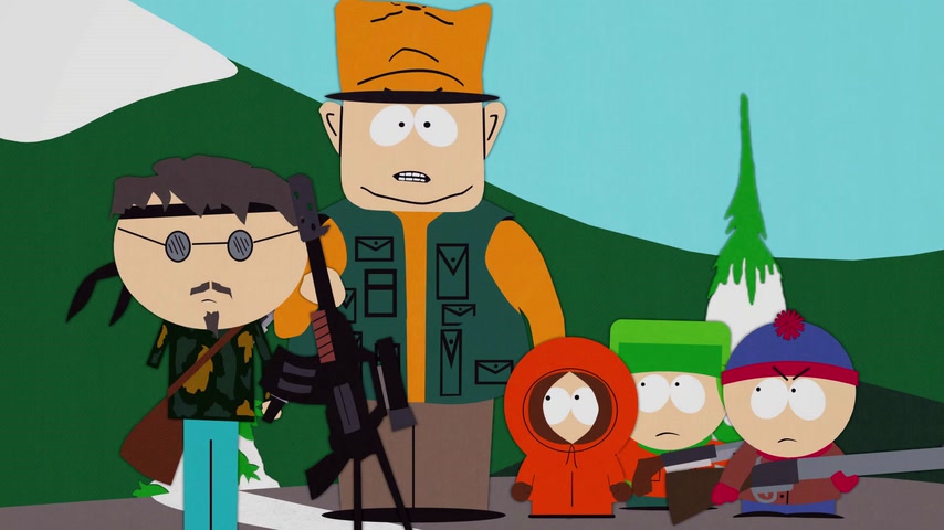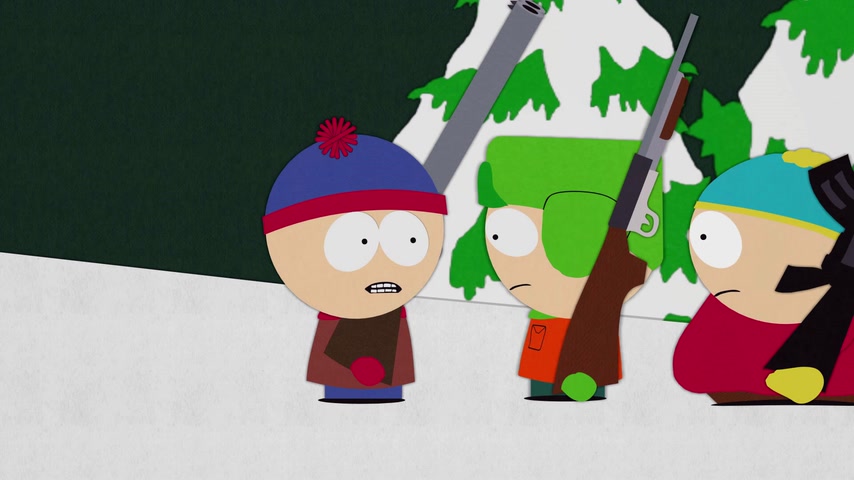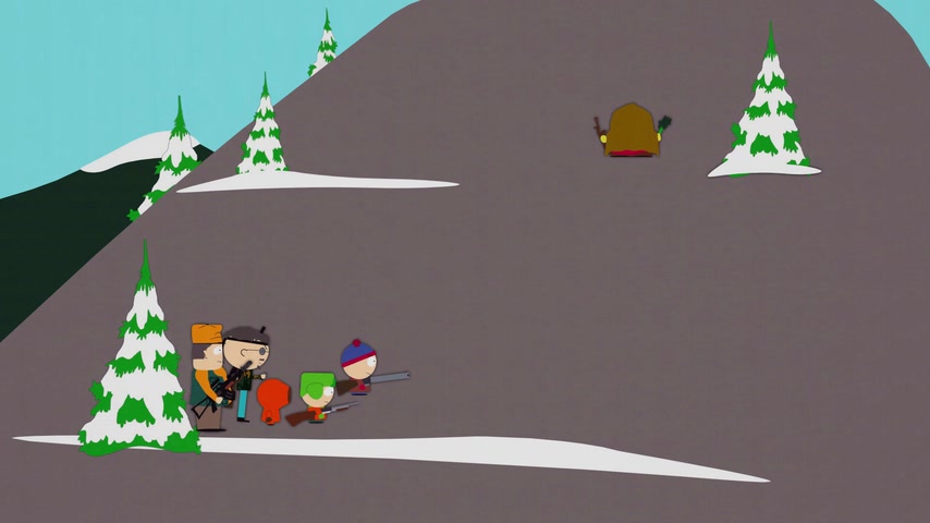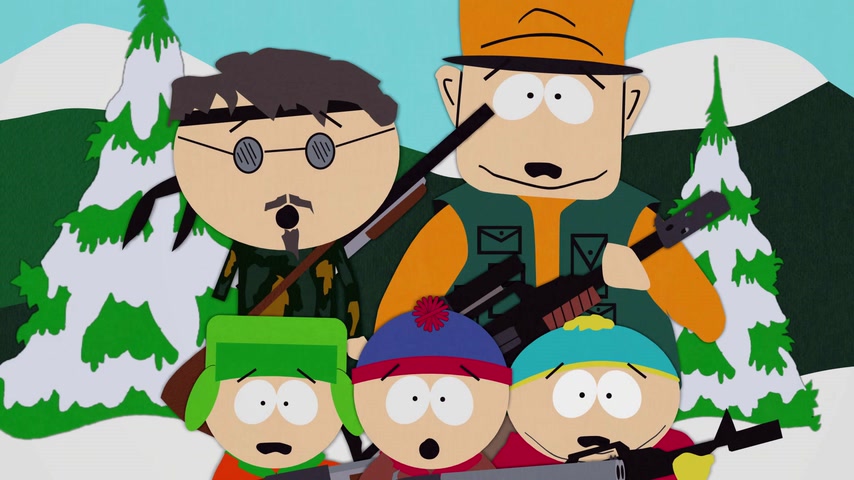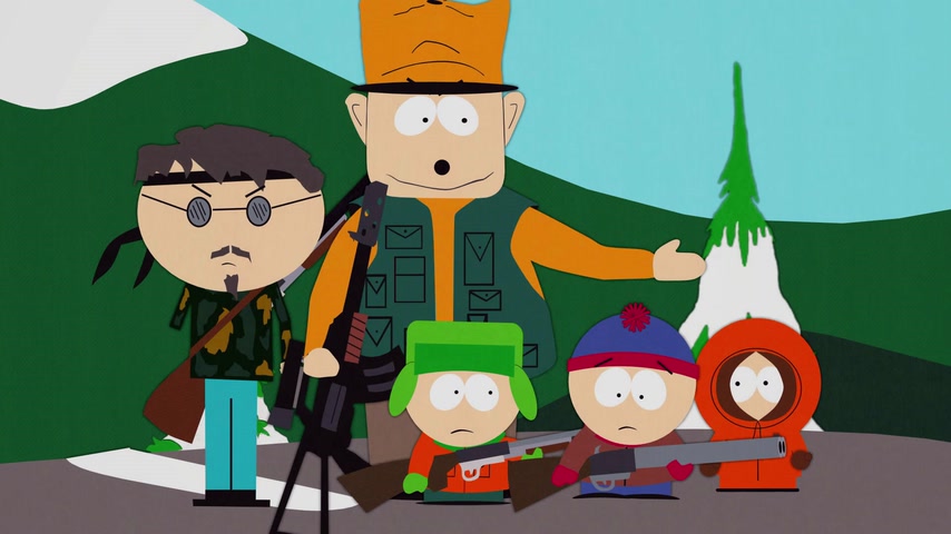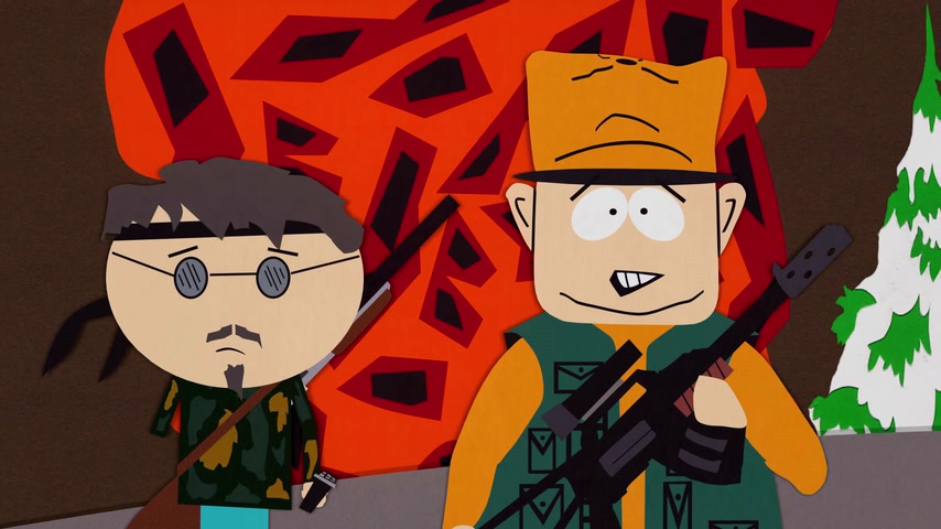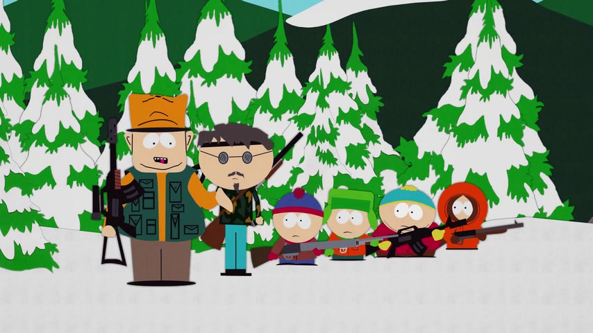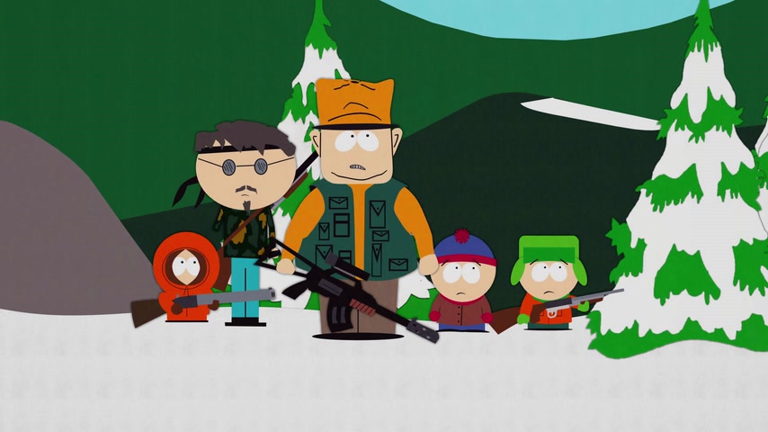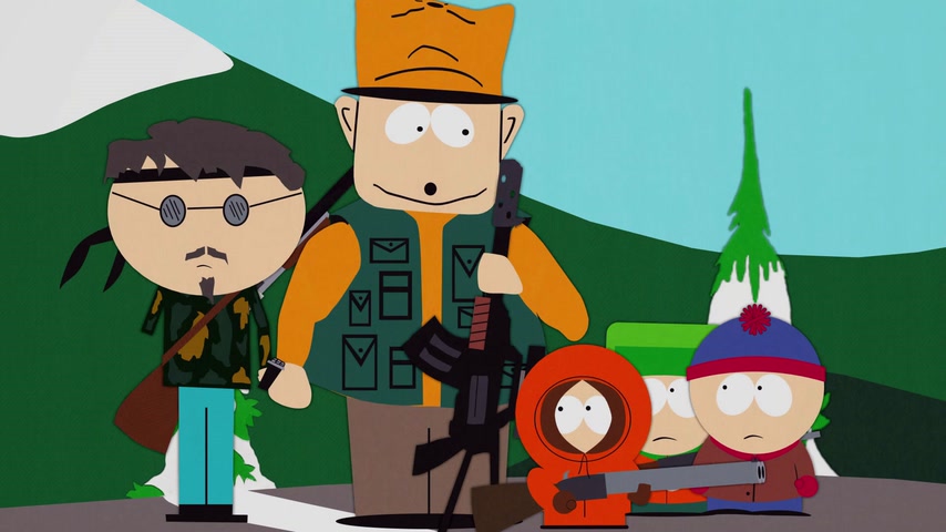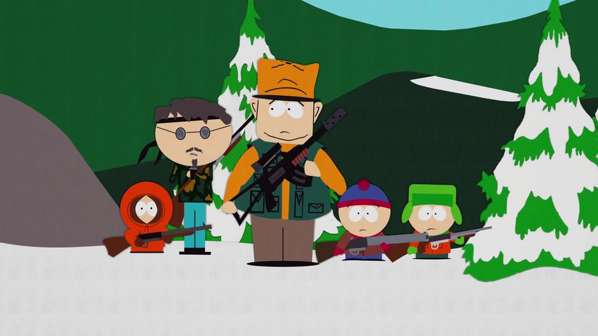 Дети отправляются на охоту с дядей Стэна Джимбо и его другом Недом. Картман рассказывает о страшном горном чудище — Сказложопе. Некстати начинается извержение вулкана, которое грозит уничтожить Южный Парк.