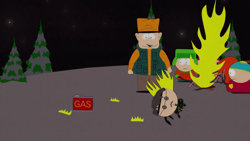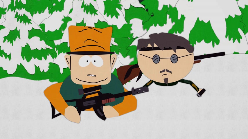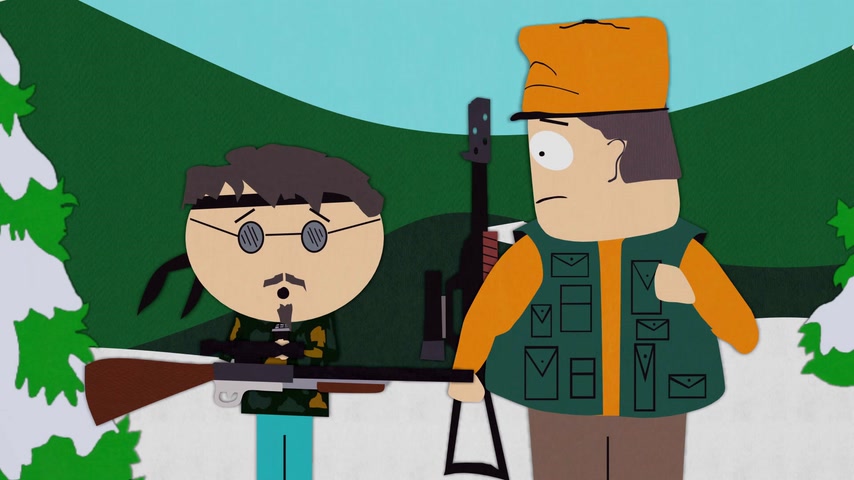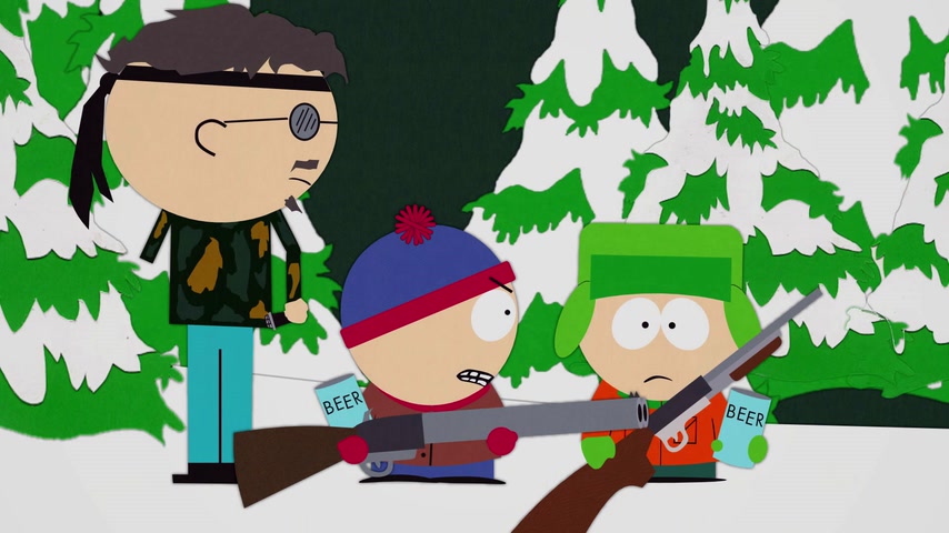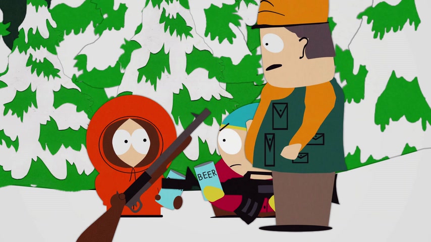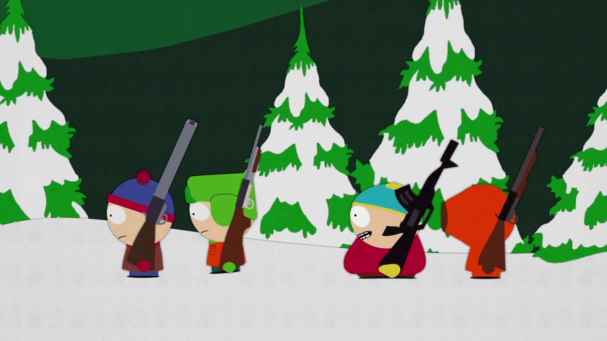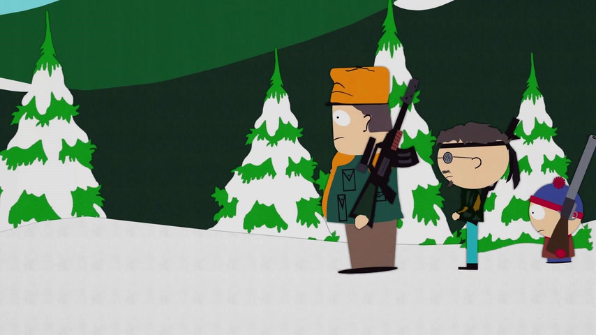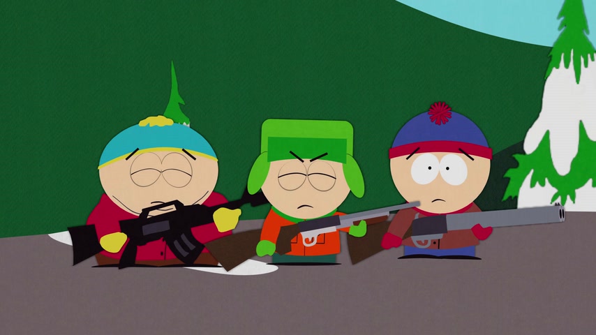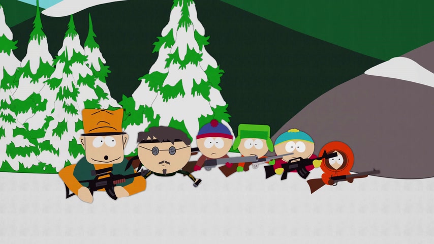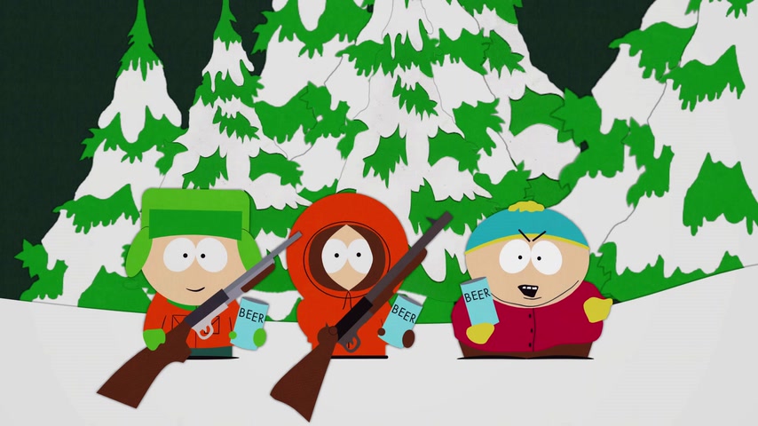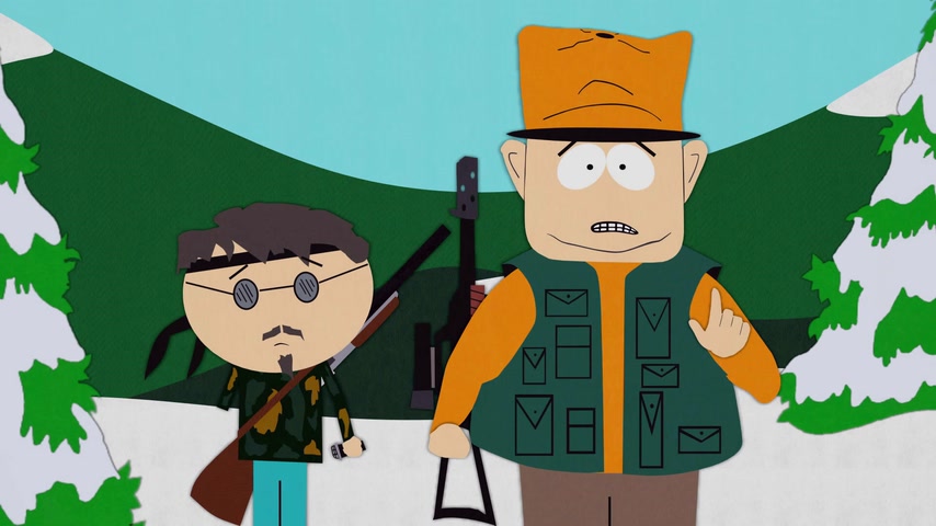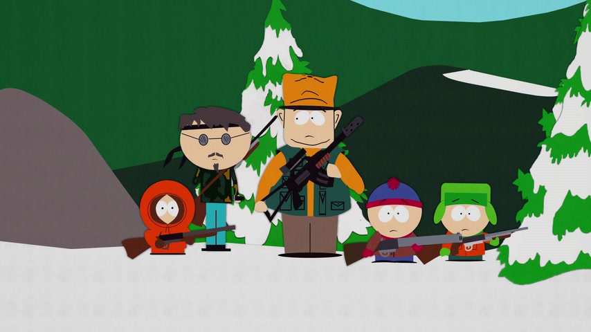 Дети отправляются на охоту с дядей Стэна Джимбо и его другом Недом. Картман рассказывает о страшном горном чудище — Сказложопе. Некстати начинается извержение вулкана, которое грозит уничтожить Южный Парк.