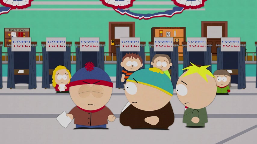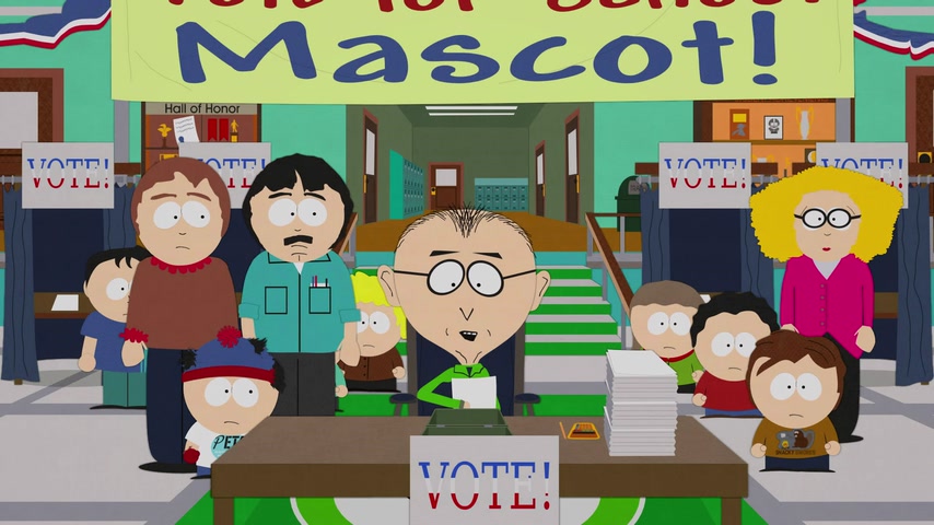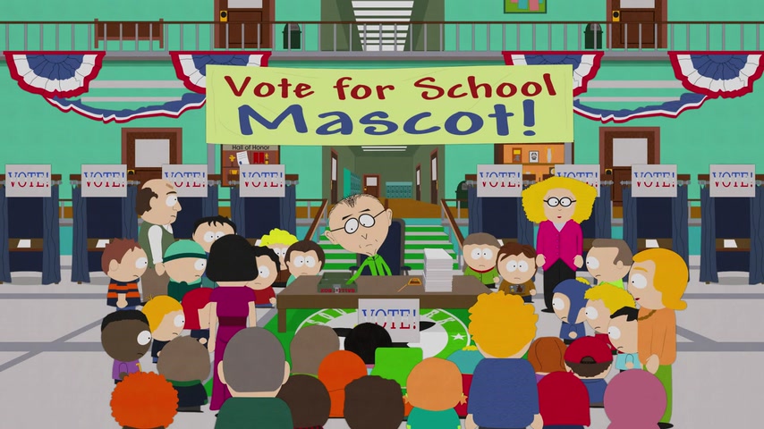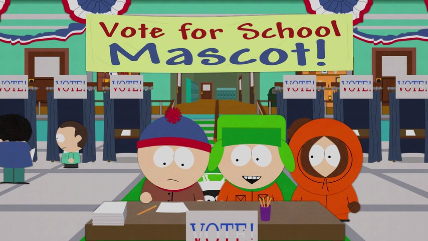 Общество защиты животных протестует против использования коровы в качестве талисмана школы. Стэн не хочет голосовать на выборах нового талисмана, где разгорается борьба кандидатов Кайла и Картмана.