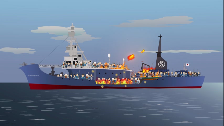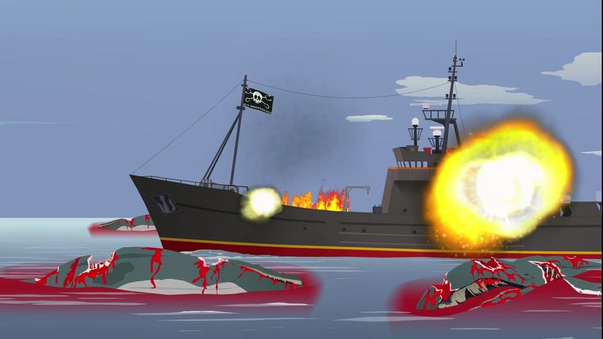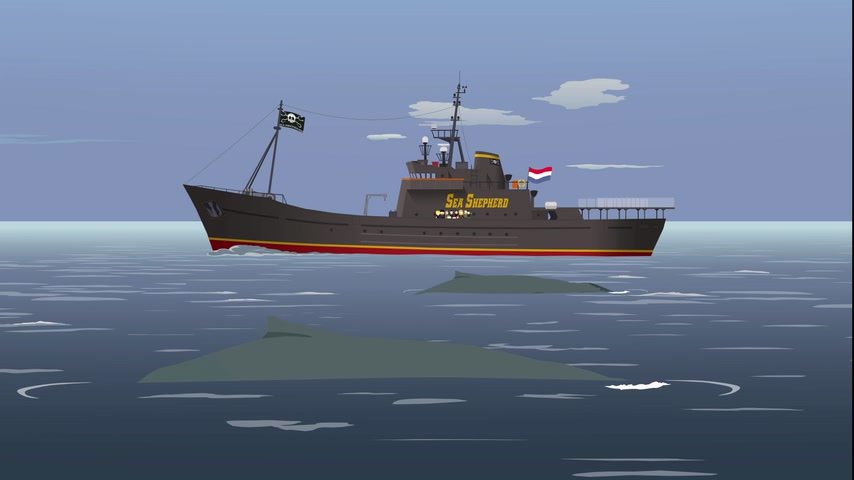 Стэн принимает меры, чтобы остановить убийство китов и дельфинов японцами.