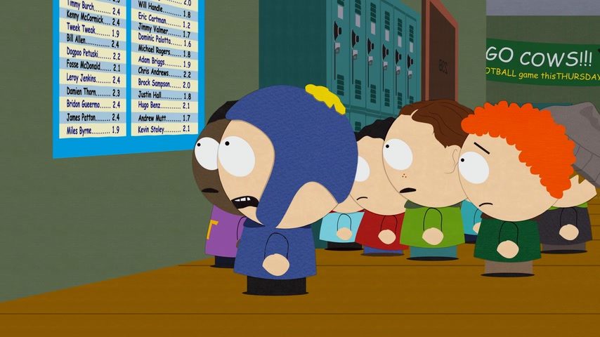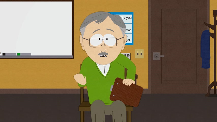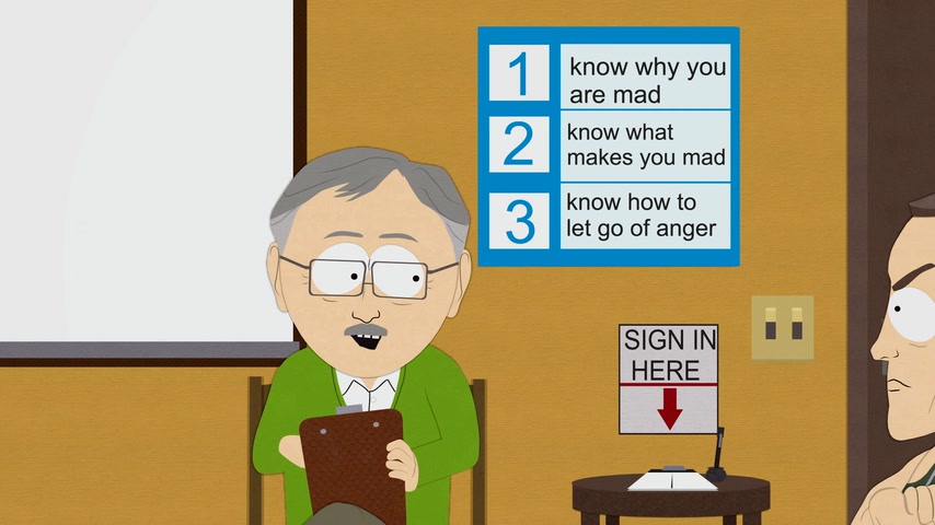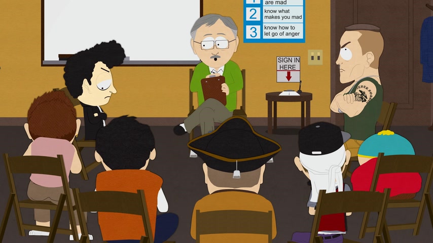 Картман в бешенстве, на доске школьных объявлений были обнародованы размеры члена всех мальчиков. После очередной вспышки ярости его отправляют на терапию по Управлению Гневом.